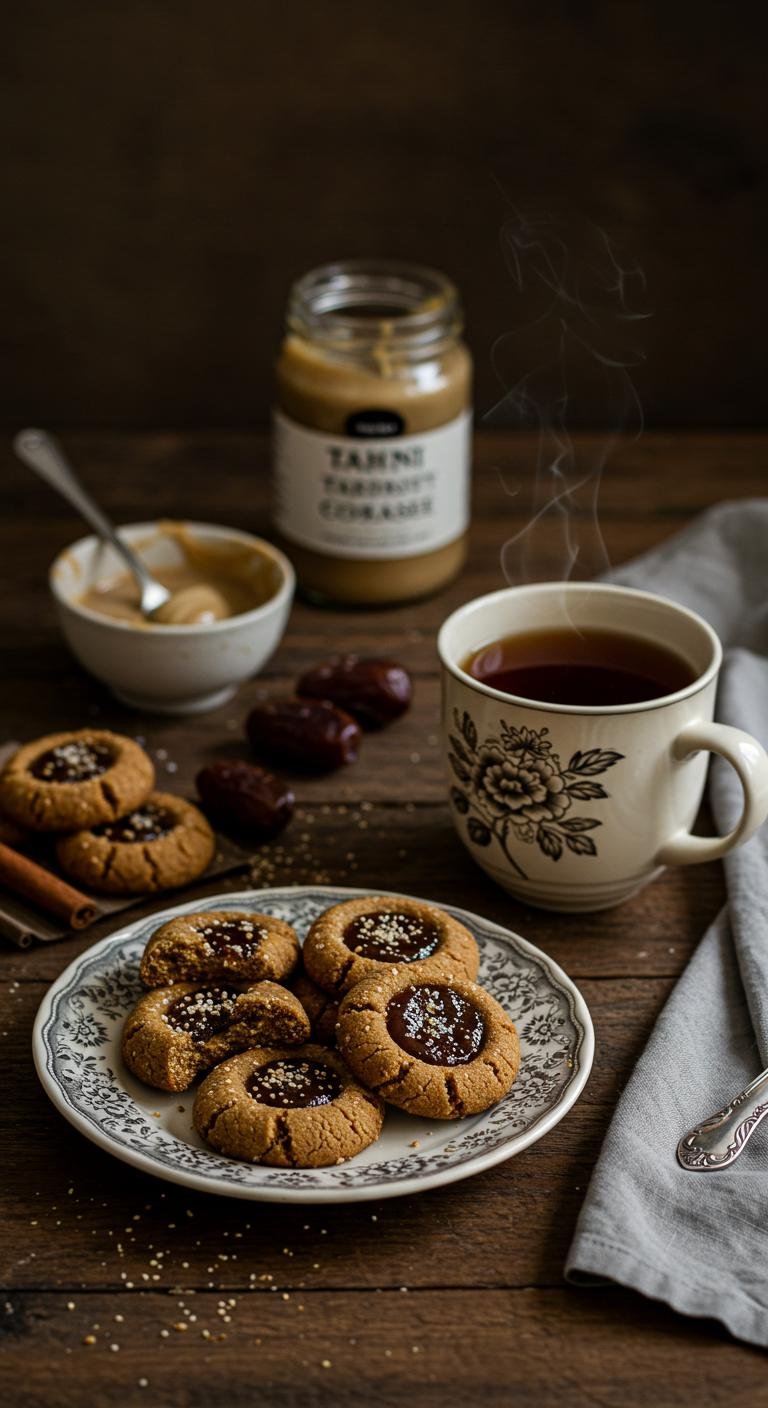 - Dollop or drizzle a small amount of the remaining tahini (about 1 teaspoon per cookie across the batch) over or around each filling and gently swirl with a toothpick or tip of a knife for a marbled look.