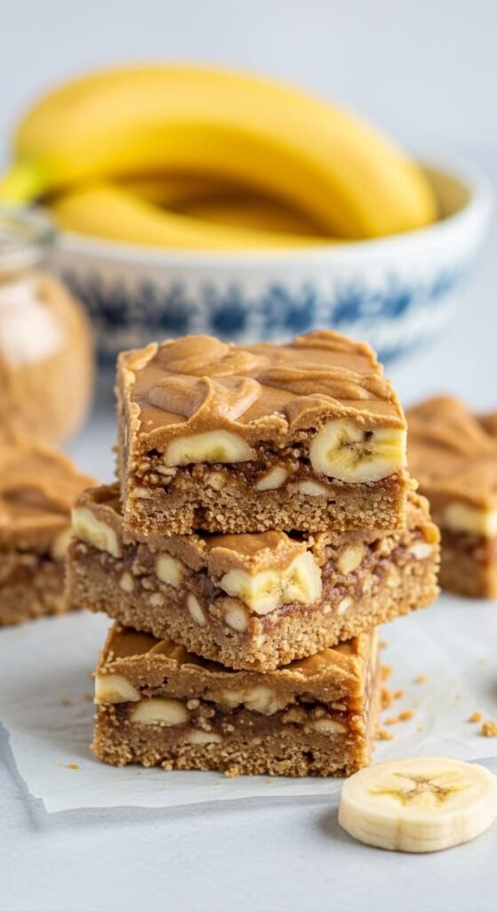 Peanut Butter Banana Crunch Bars — chewy, nutty bars with a banana twist and a satisfying crunch.