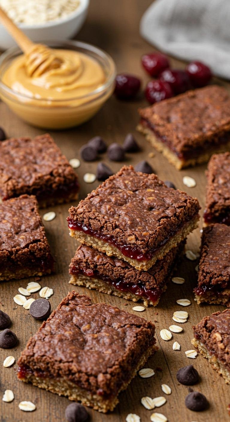 Chewy chocolate-cherry oat squares that taste like a silkier granola bar — perfect for snacks or dessert bites.
