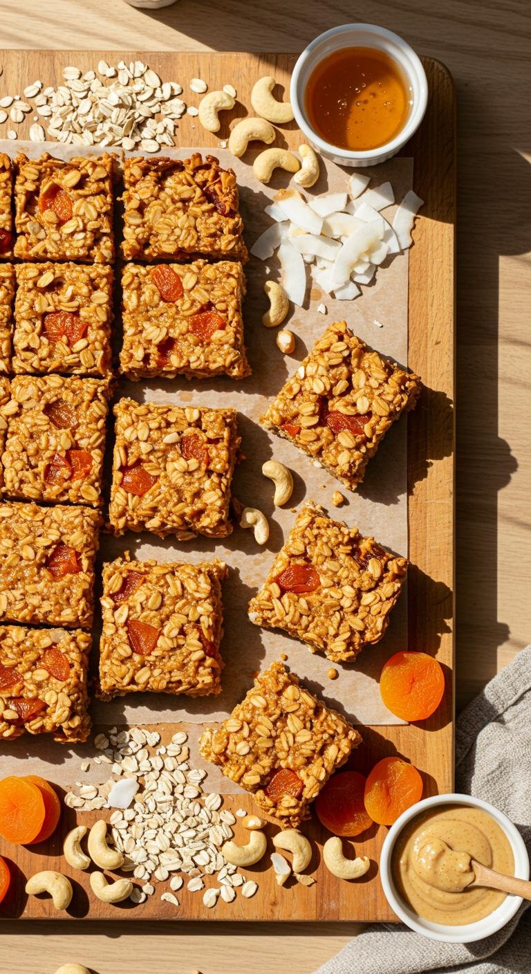 Bright, chewy no-bake bars bursting with apricot sweetness and crunchy cashew goodness.