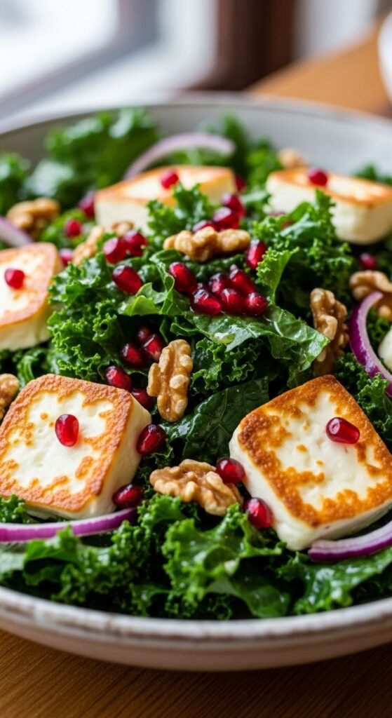Winter Kale, Walnut, and Baked Feta Greek Salad — hearty, tangy, and cozy enough for chilly nights.