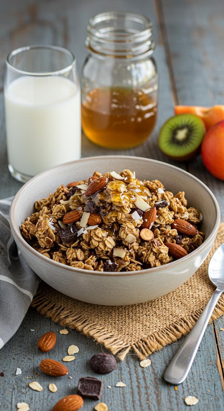 Almond Butter Honey Crunch Granola: Nutty, slightly sweet, and irresistibly crunchy—perfect for breakfast or snacking.