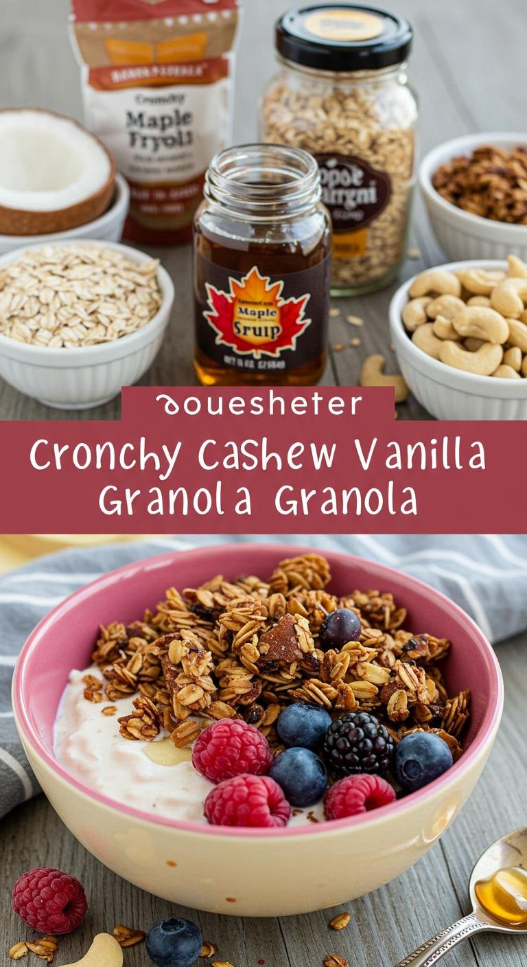 Coconut Cashew Vanilla Granola — crunchy, subtly sweet, and perfect for breakfast or snacking.