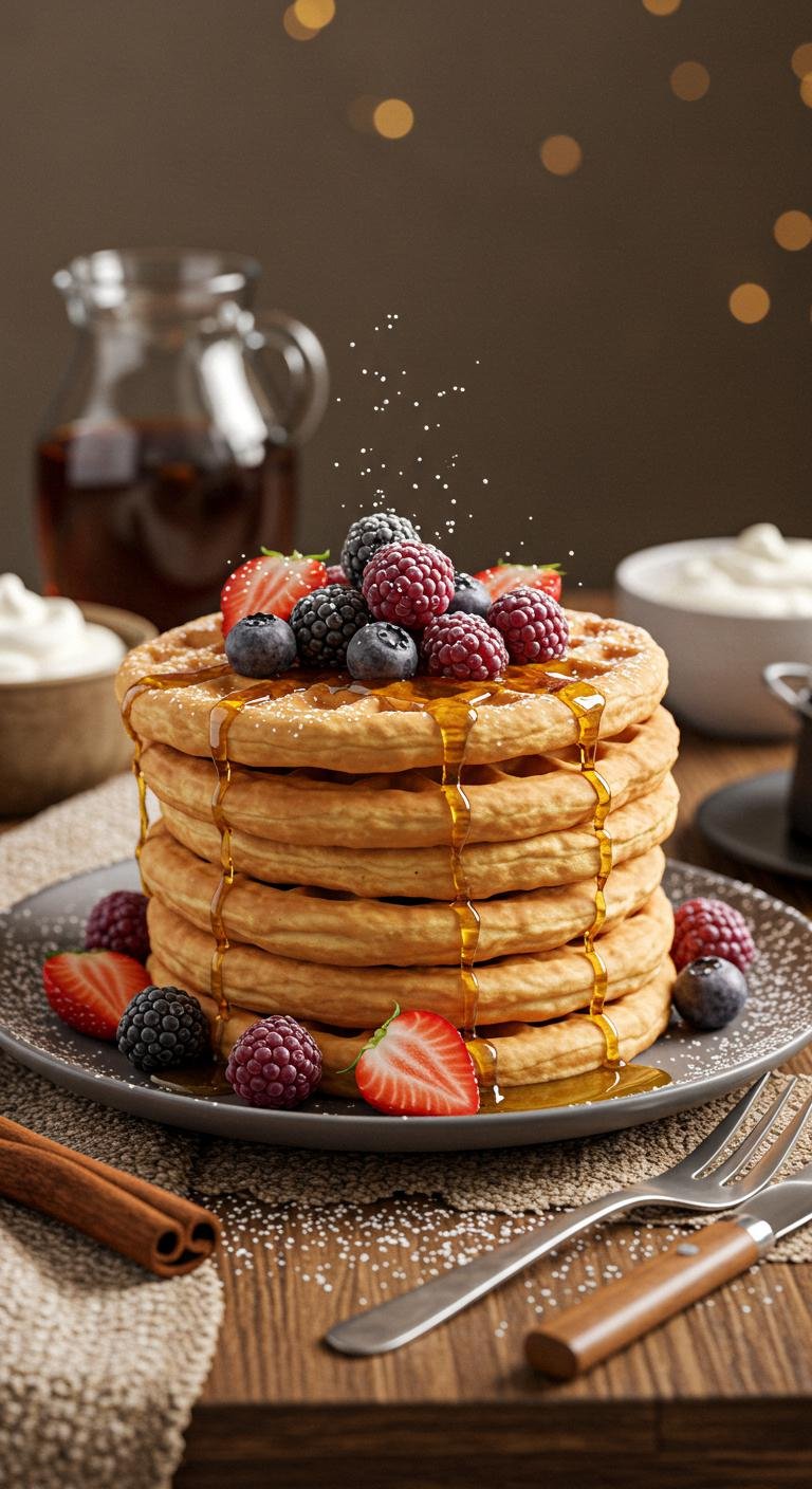Light, fluffy vanilla-scented waffles with a warm kiss of cinnamon — perfect for cozy mornings.