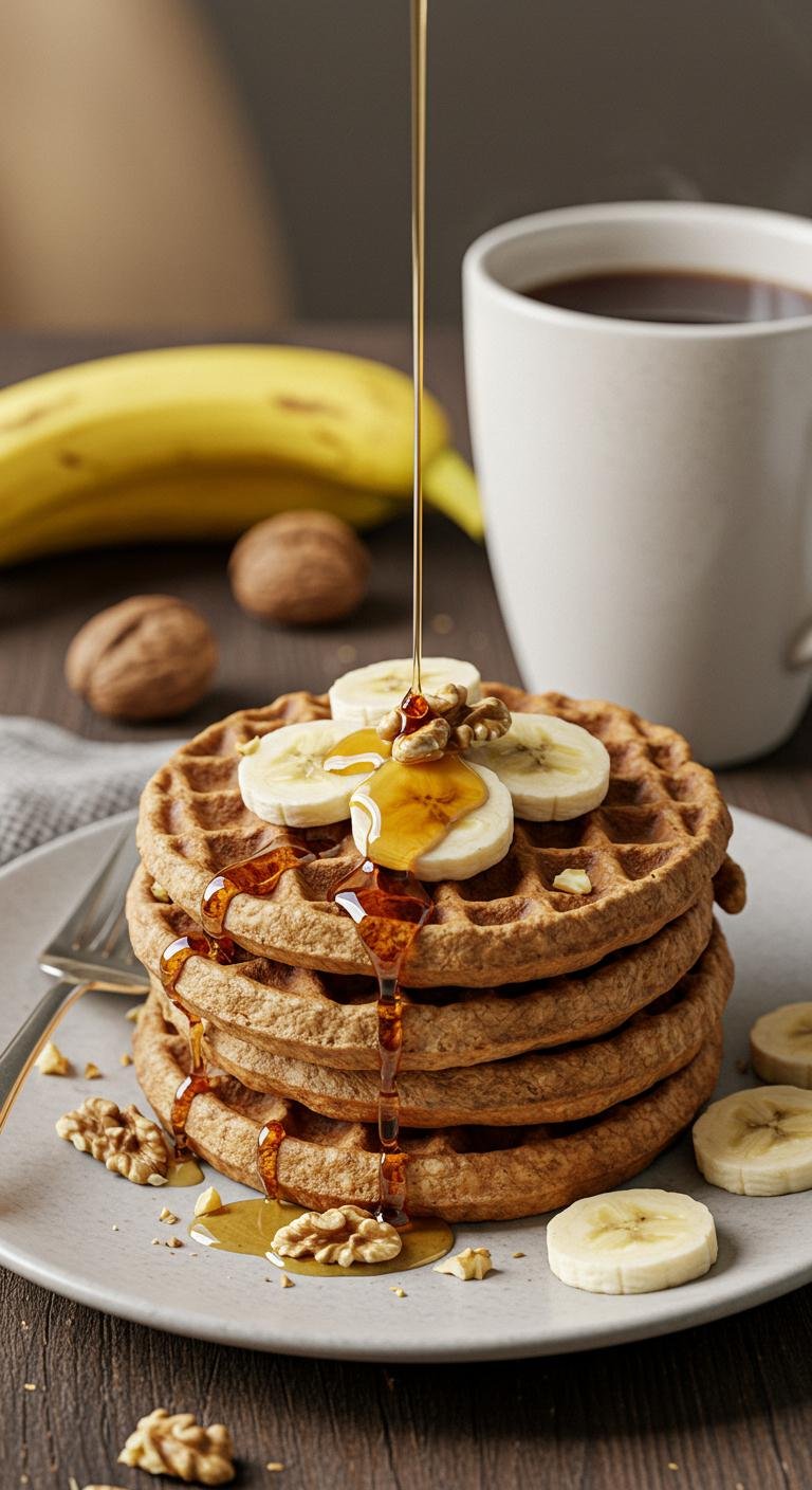 Sweet, nutty, and hearty — these banana walnut whole-grain waffles make mornings feel like a cozy hug.