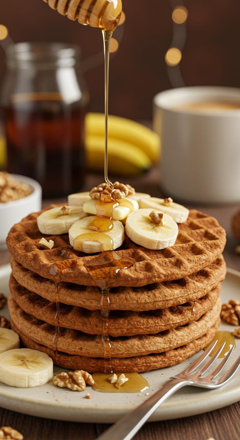 Enjoy these nutty, banana-filled whole wheat waffles — perfect for a comforting weekend breakfast!