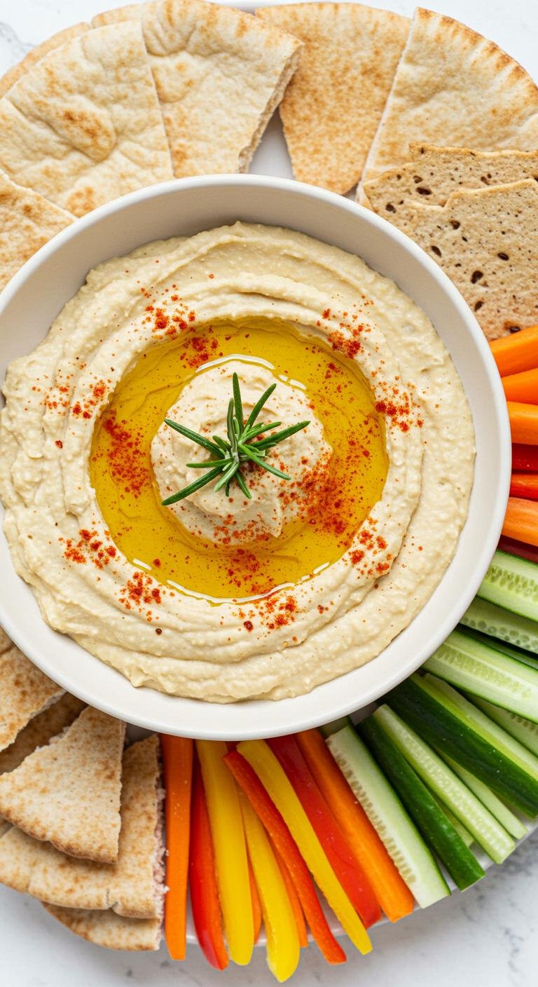 Enjoy this herby, velvety white bean hummus — perfect for parties or a quick, delicious snack!