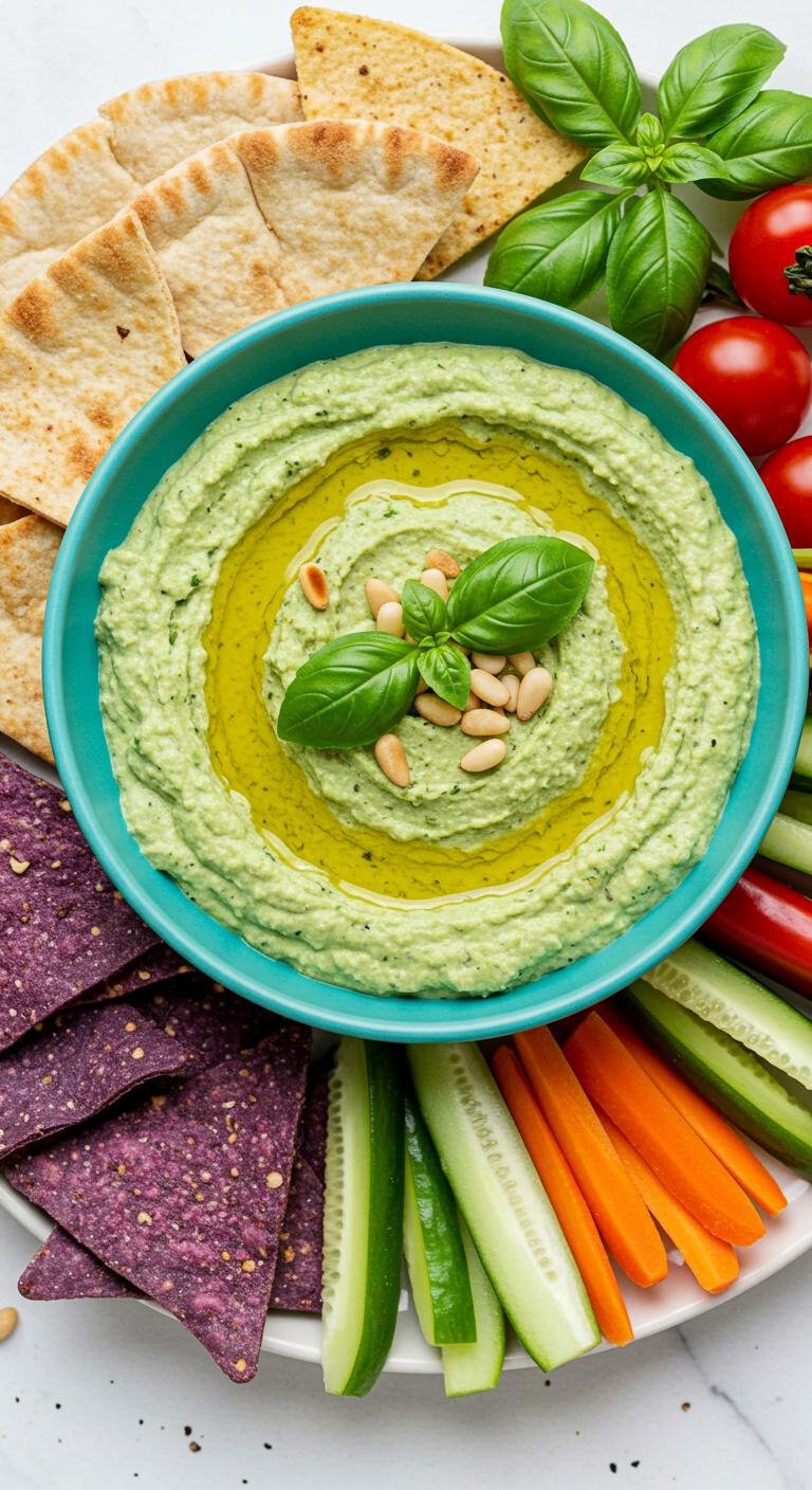 Bright, herby basil pesto hummus that’s fresh, creamy, and perfect for dipping or spreading.