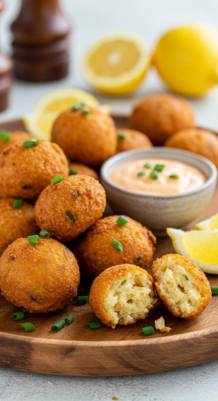 Bright, airy hush puppies kissed with lemon and fresh basil — savory, bright, and perfect for dipping.