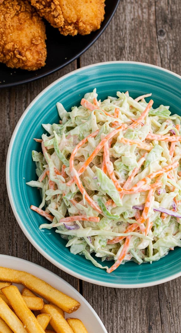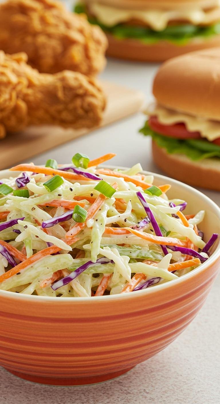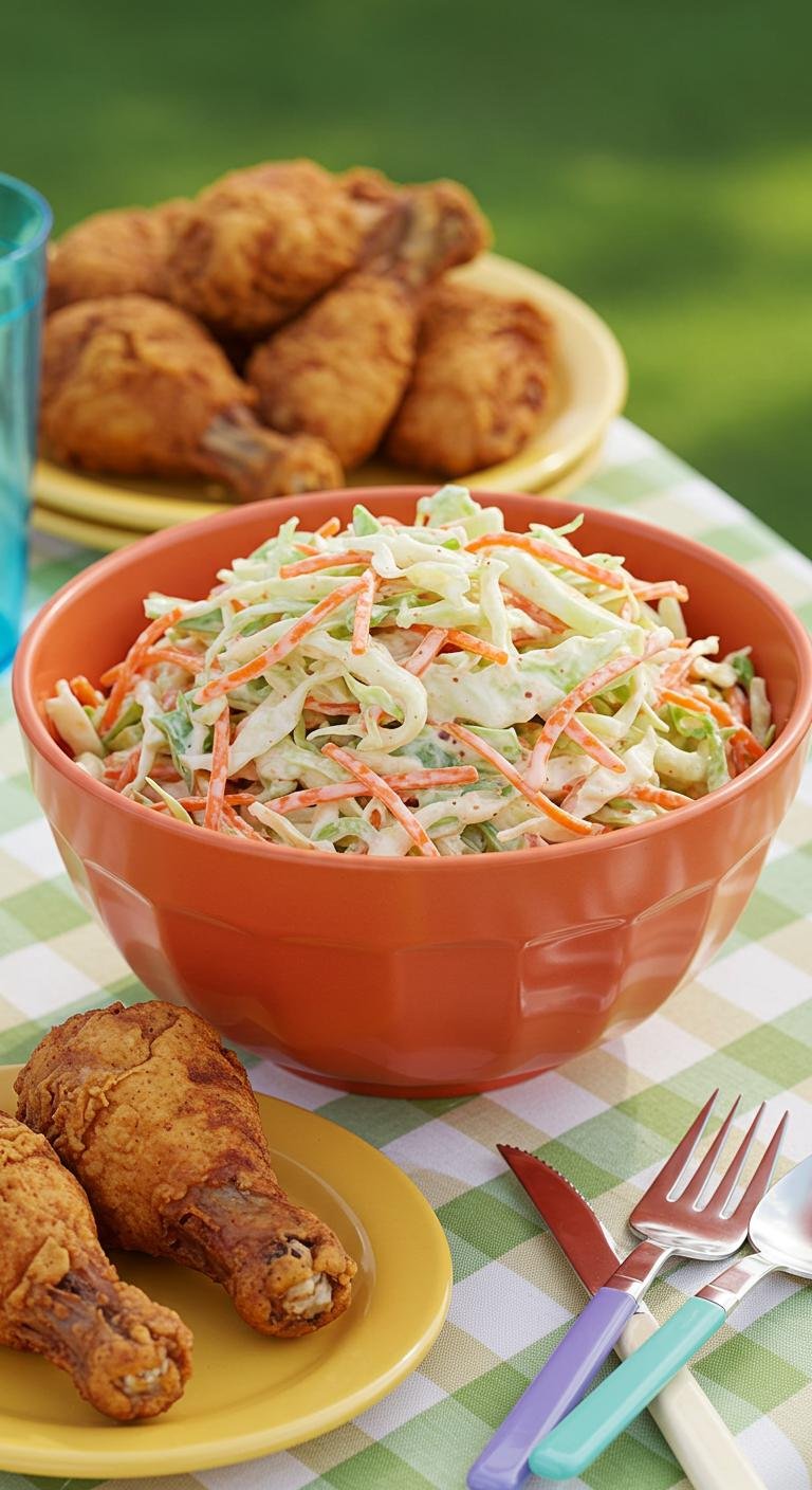 This creamy, tangy slaw is perfect alongside fried chicken, sandwiches, or as a revitalizing picnic side — enjoy every crunchy, tangy bite!