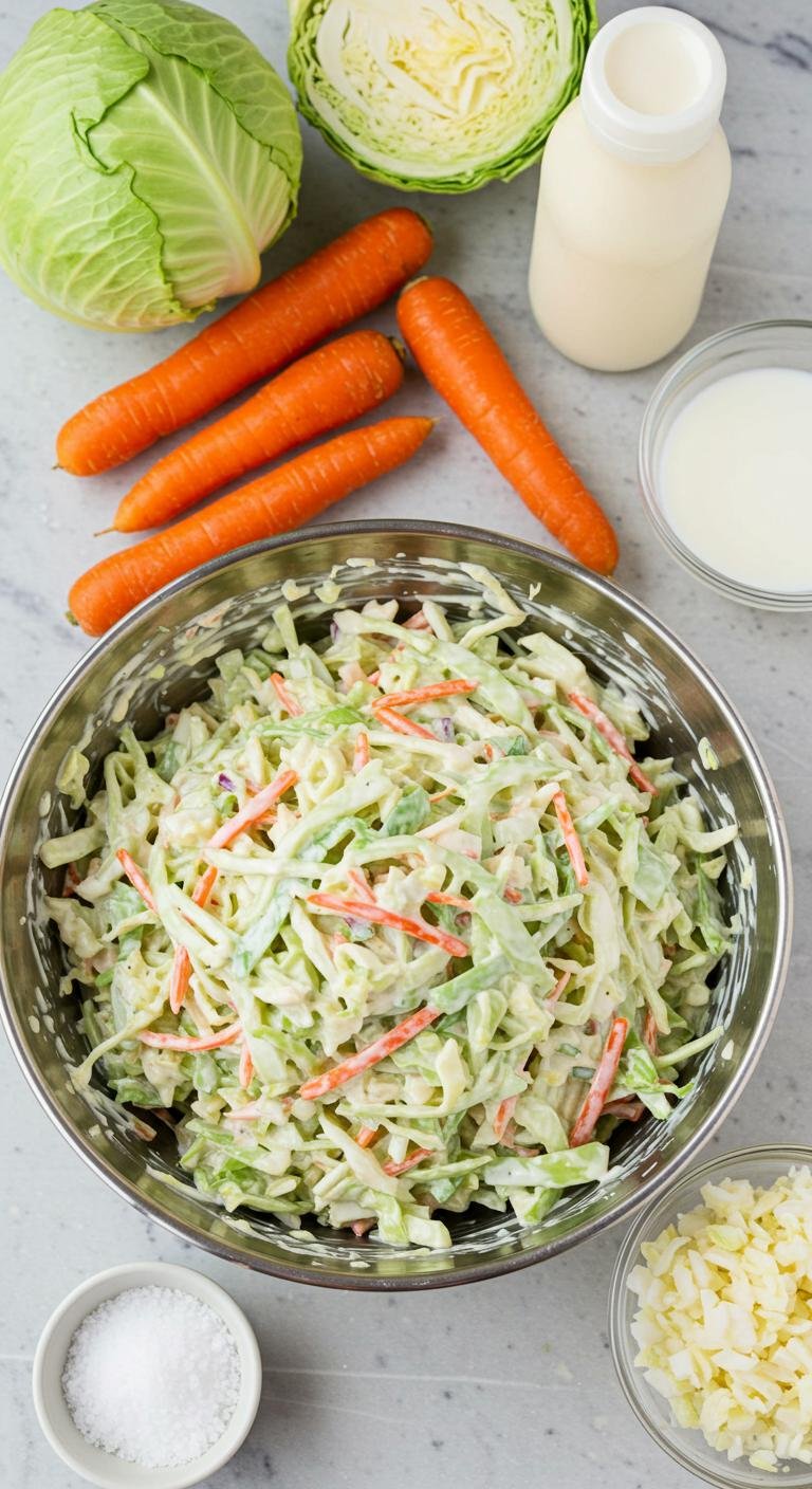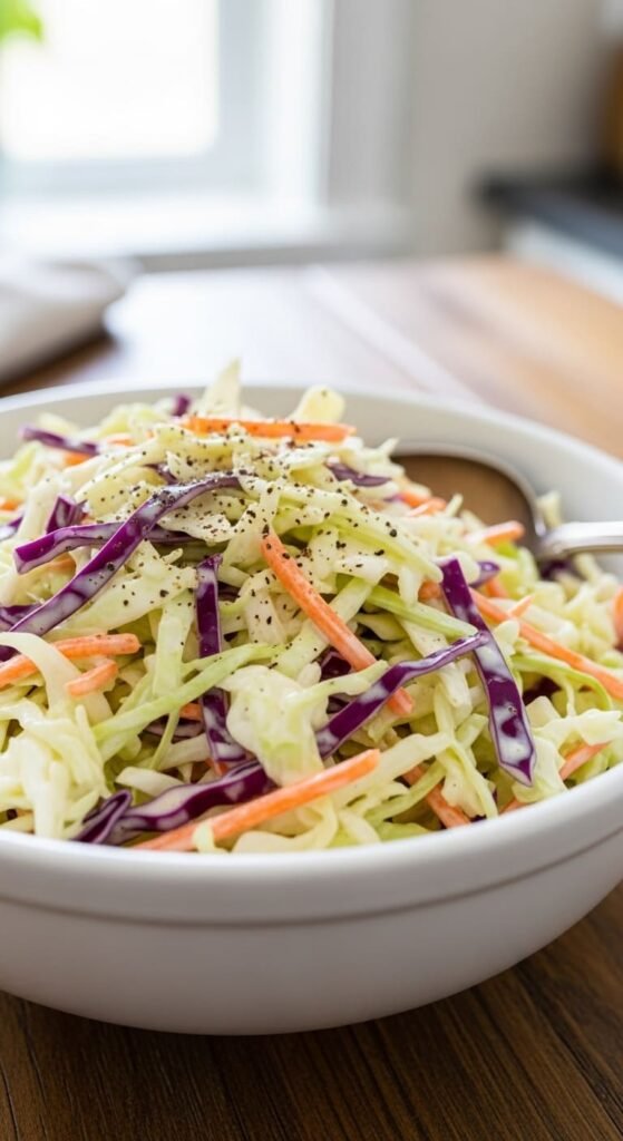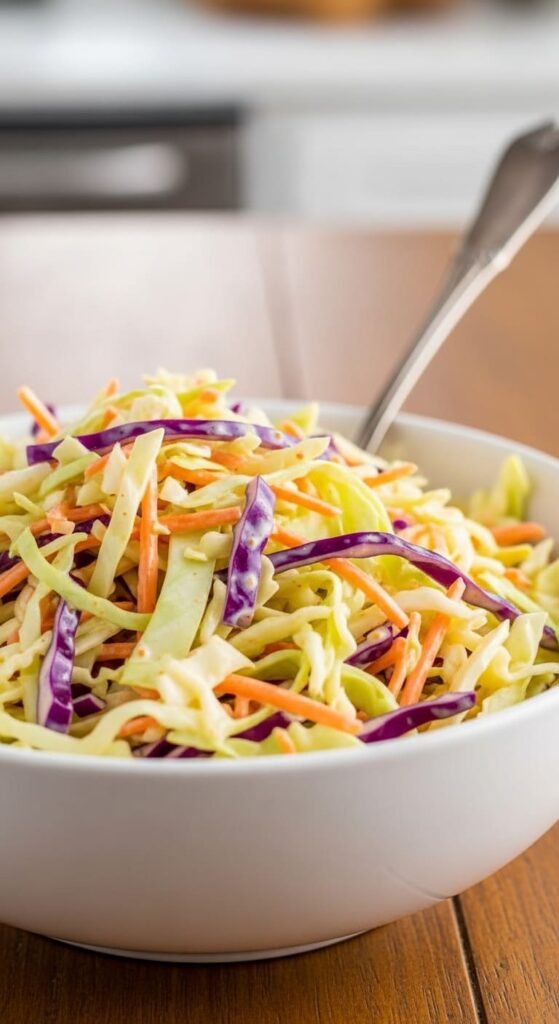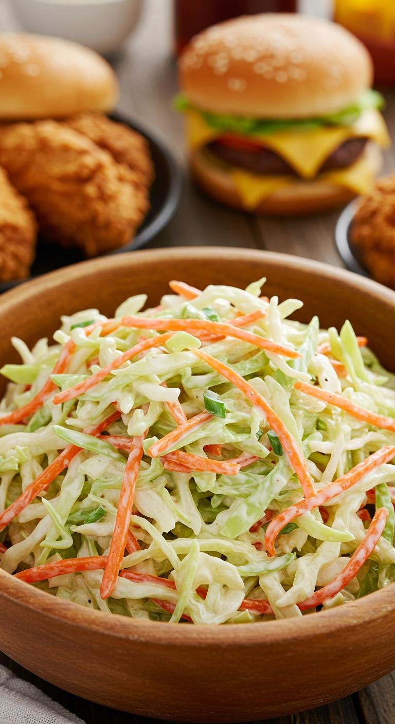 This creamy, tangy slaw is perfect alongside fried chicken, sandwiches, or as a revitalizing picnic side — enjoy every crunchy, tangy bite!