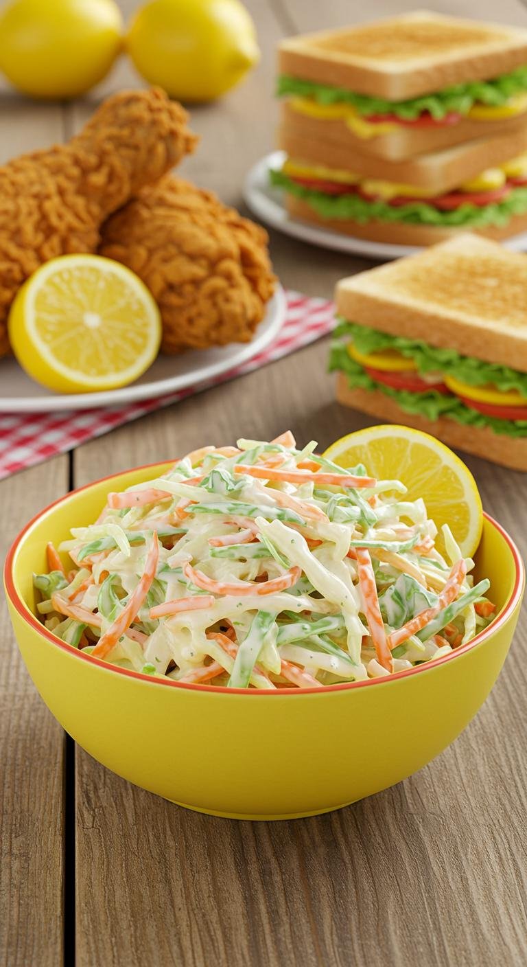 Bright, tangy, and creamy—this Zesty Lemon KFC-Style Coleslaw brings sunshine to your plate.
