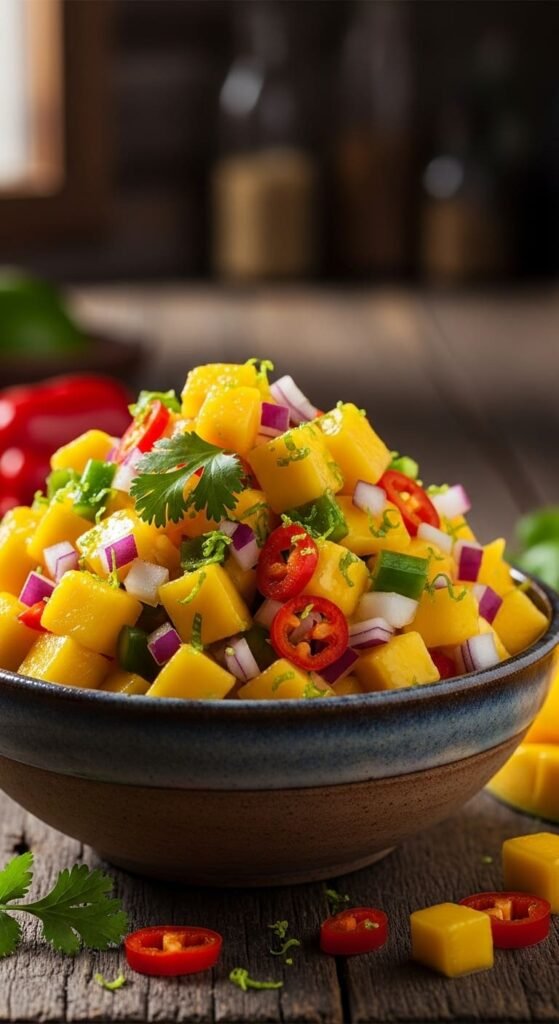 Bright, zesty mango and red onion salsa — sweet, tangy, and perfect with chips or grilled fish.