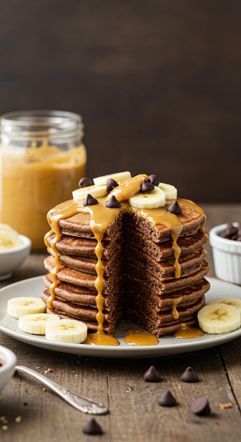 Enjoy these chocolatey, peanut-buttery pancakes warm — perfect for a cozy, protein-packed morning!