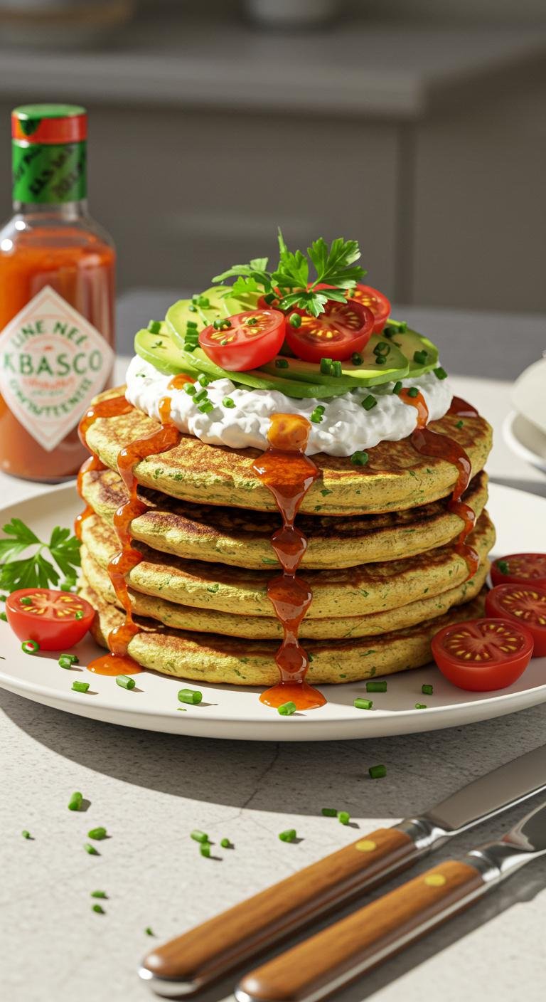 Enjoy these savory, herb-packed protein pancakes warm — a delightful way to fuel your day!