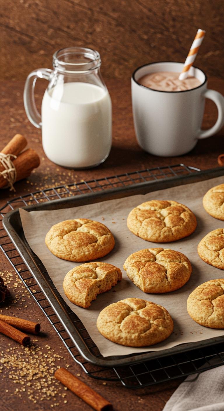 Enjoy these warm, cinnamon-sugary vegan snickerdoodles with a cup of dairy-free milk — pure cozy cookie bliss.