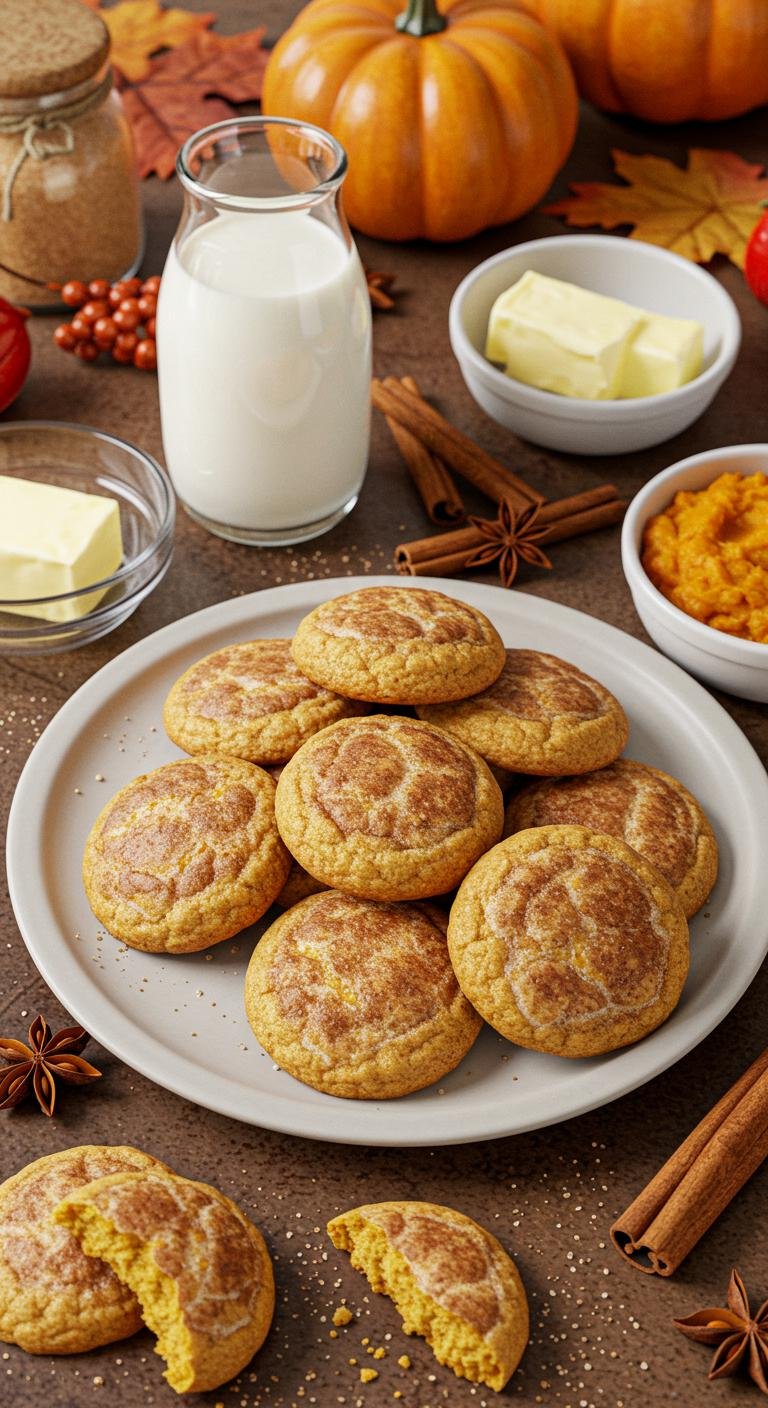 Enjoy these warm, cinnamon-kissed pumpkin snickerdoodles with a glass of milk or your favorite fall drink!