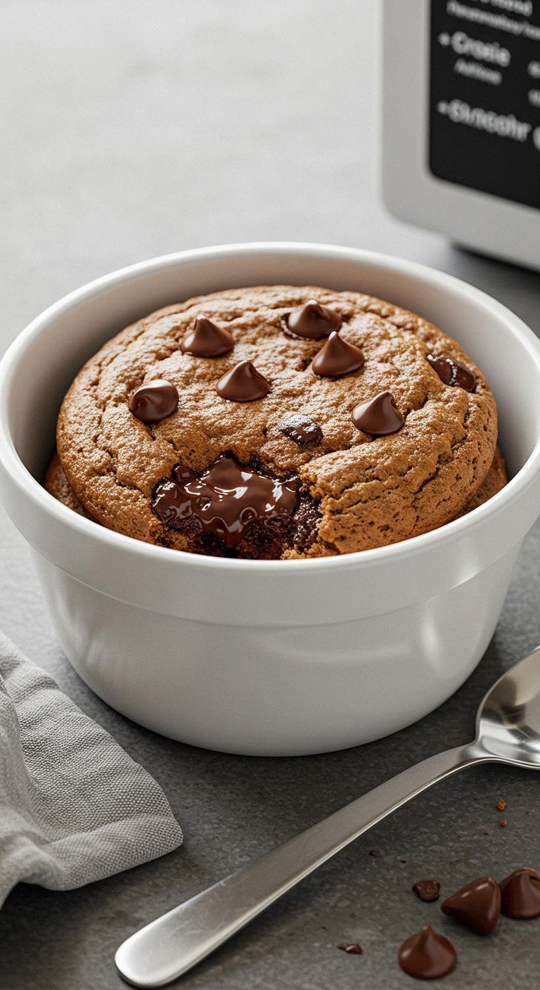 Single-serving soft chocolate chip cookie made in minutes — warm, gooey, and perfectly portioned.