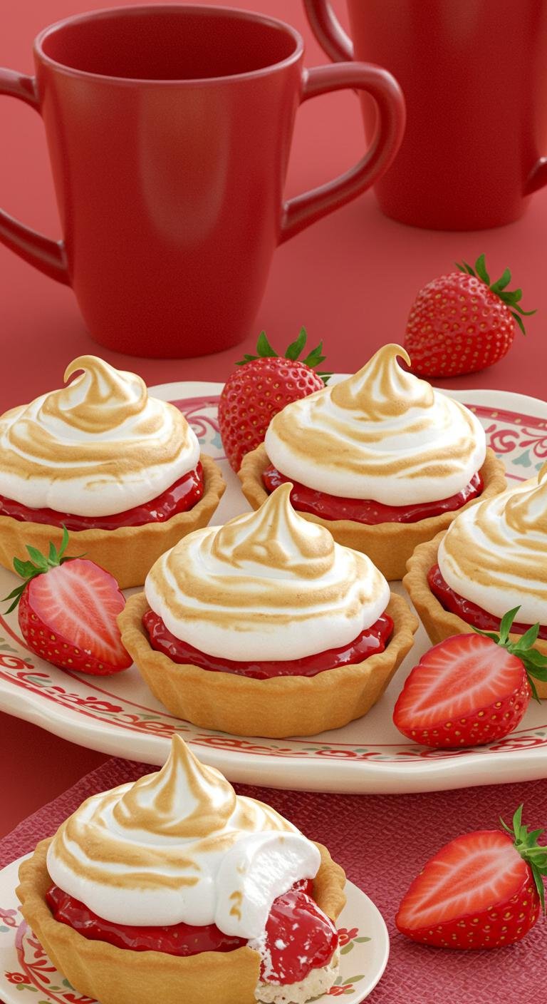 Enjoy the sweet contrast of jammy strawberries and airy, toasted meringue — perfect for parties or a sunny snack!