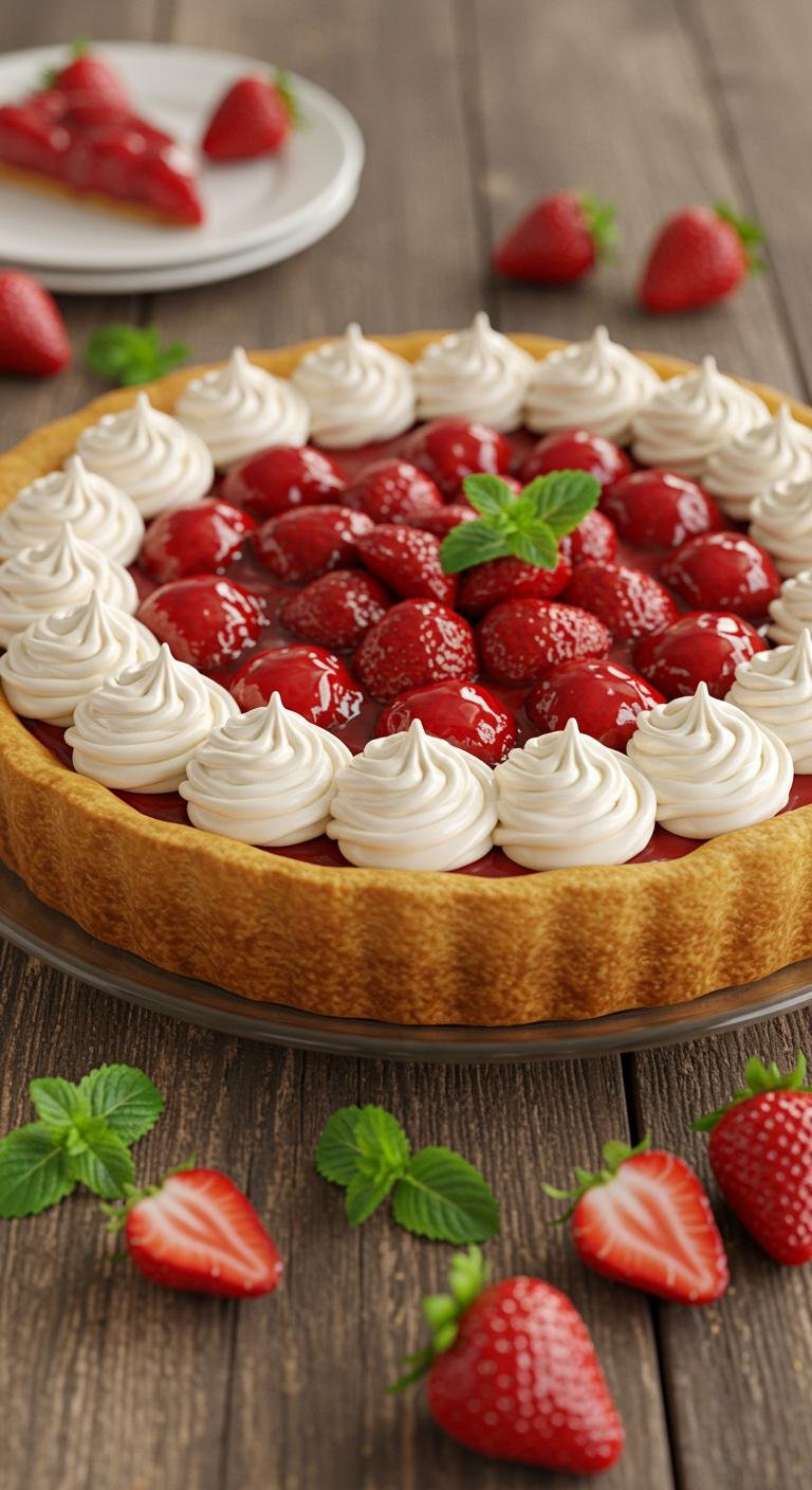Whipped Cream Strawberry Glazed Pie — light, fluffy, and glossy with strawberry-sweet charm.