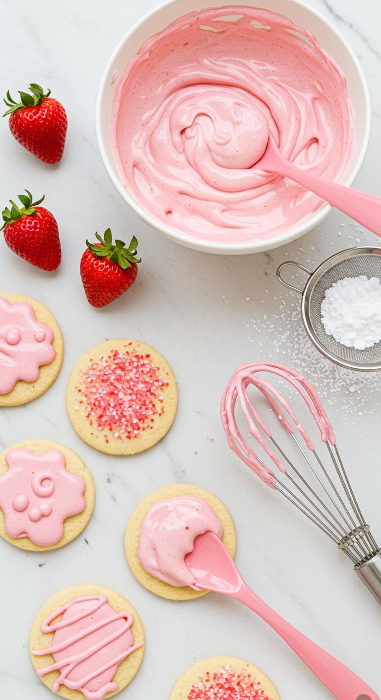Strawberry Cream Cheese Glaze — bright, tangy, and dreamy on sugar cookies.