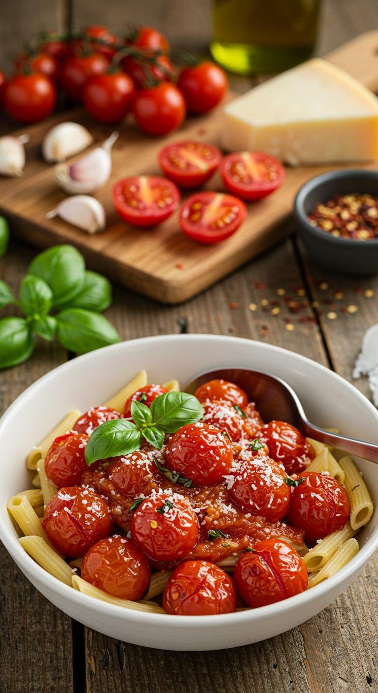 Bright, sweet roasted cherry tomato sauce that’s quick, fresh, and bursting with summer flavor.