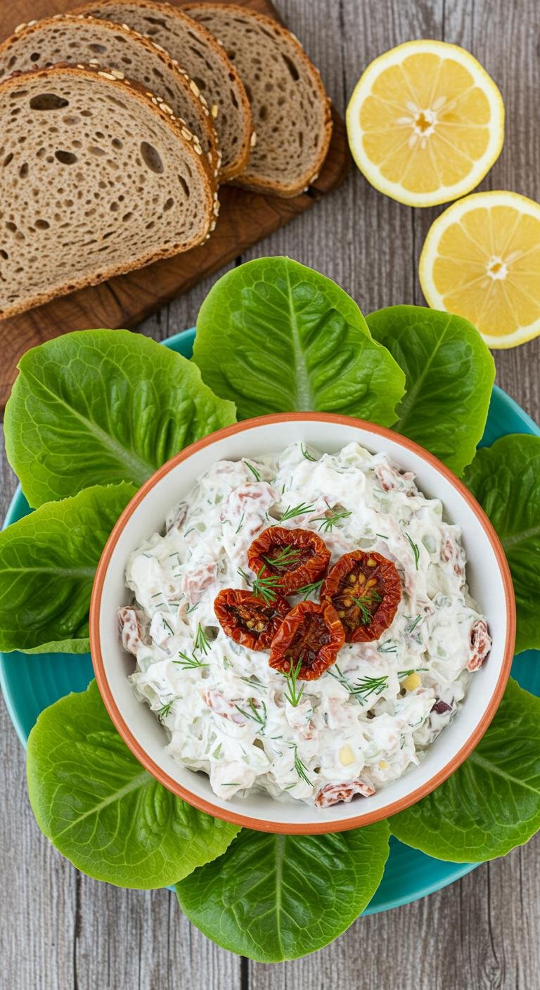 Creamy Greek yogurt tuna with bright dill and tangy sun-dried tomatoes — a fresh twist on a classic.