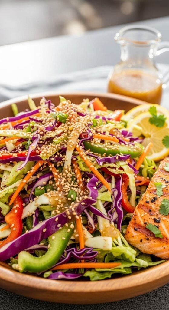 Bright, tangy, and nutty — this Honey-Soy Rice Vinegar Slaw is a lively side that wakes up any meal.