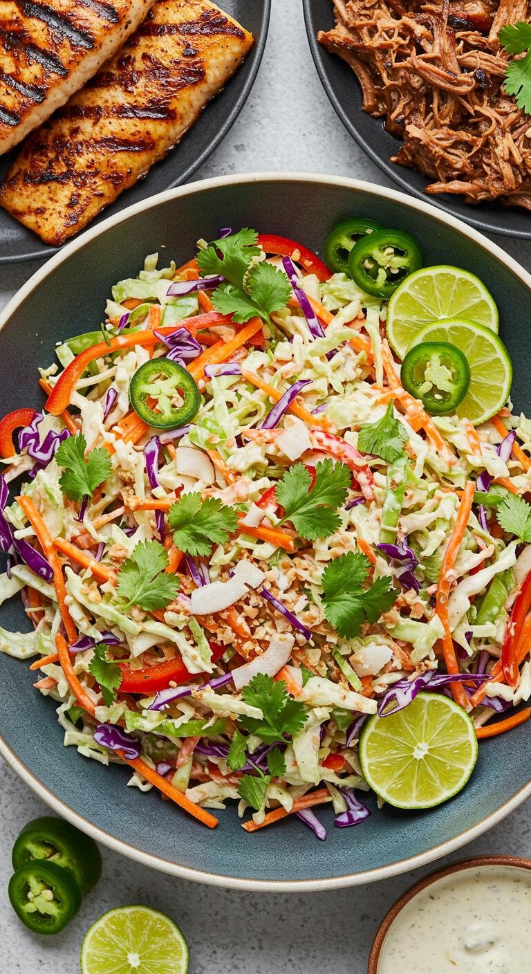 A zesty, crunchy slaw with a spicy jalapeño-lime kick — perfect for tacos, grilled meats, or on its own.