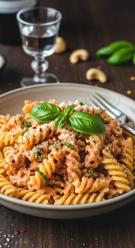 Bright, creamy vegan cashew vodka fusilli that tastes indulgent without the dairy.