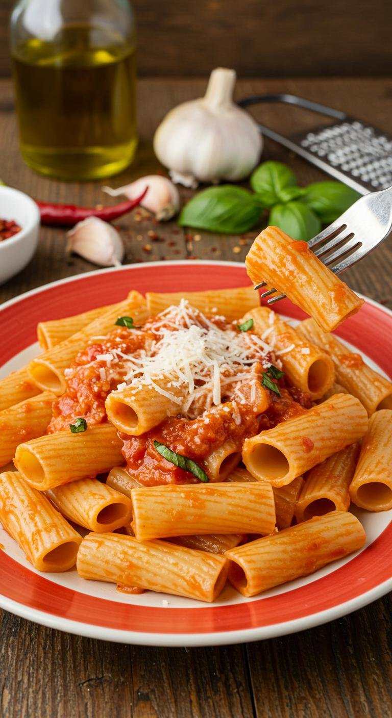 Spicy Arrabbiata Vodka Rigatoni — bold, creamy, and with a perfect kick.
