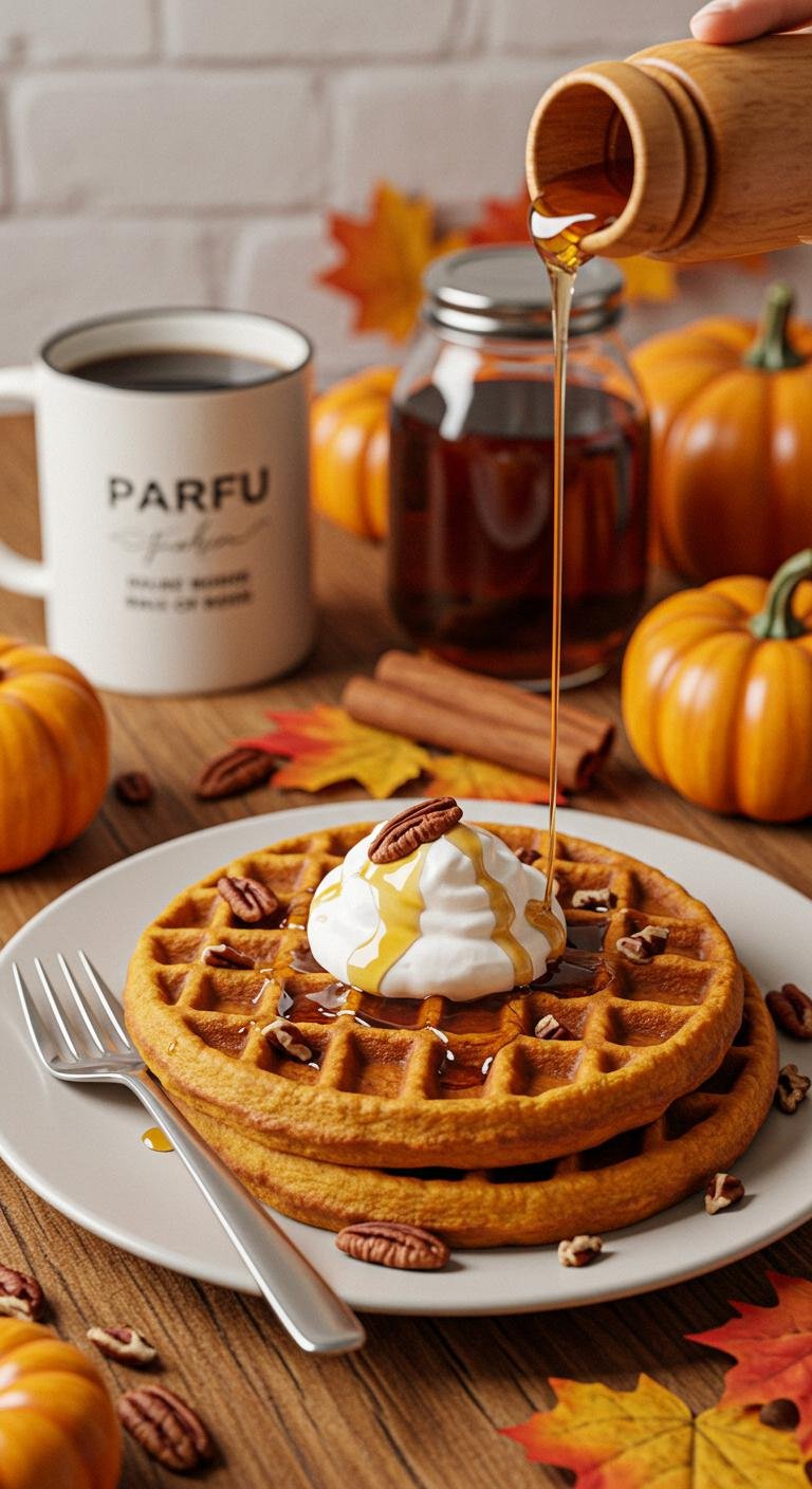 Warm, cozy pumpkin spice waffles that smell like autumn in every bite.