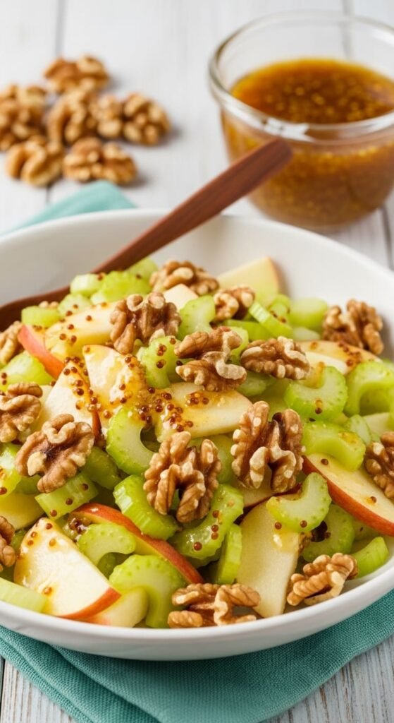 Crunchy Walnut and Celery Apple Salad With Honey-Mustard Dressing
