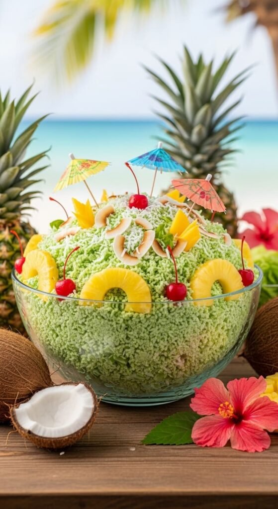 A sunny, tropical twist on the classic Watergate Salad — bright pineapple and creamy coconut make every bite feel like a mini vacation.