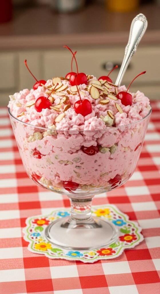 Bright, fluffy Retro Cherry-Almond Watergate Salad—sweet, nutty, and perfectly nostalgic.