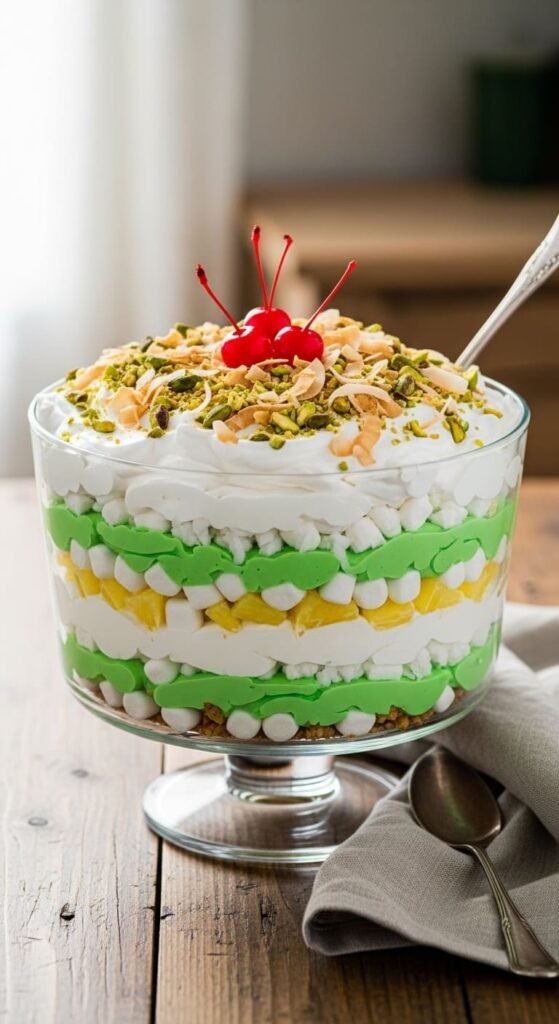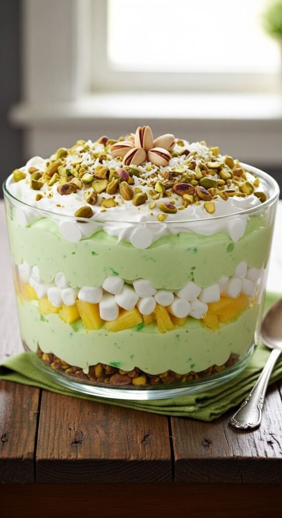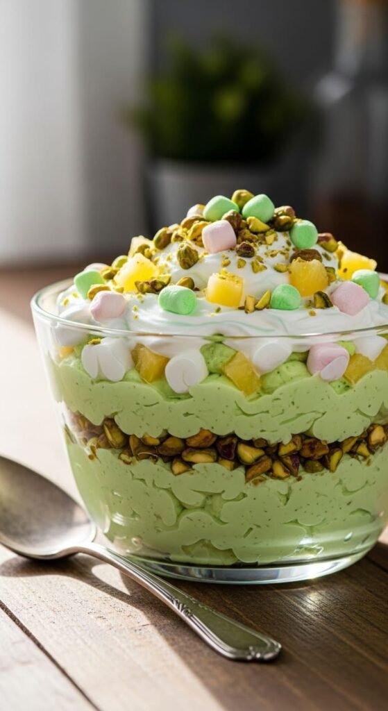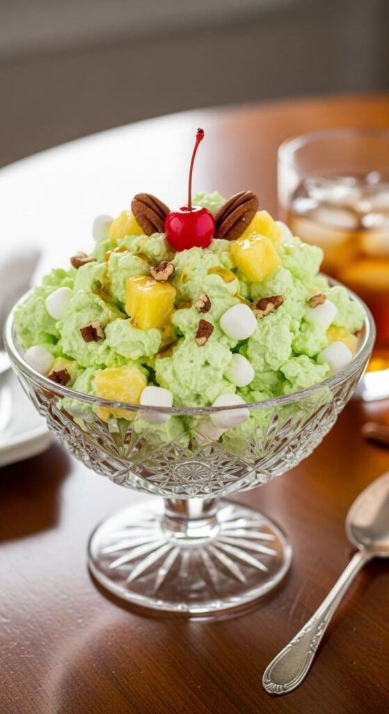Bright, creamy, and delightfully nutty — a vegan twist on the classic Watergate salad.