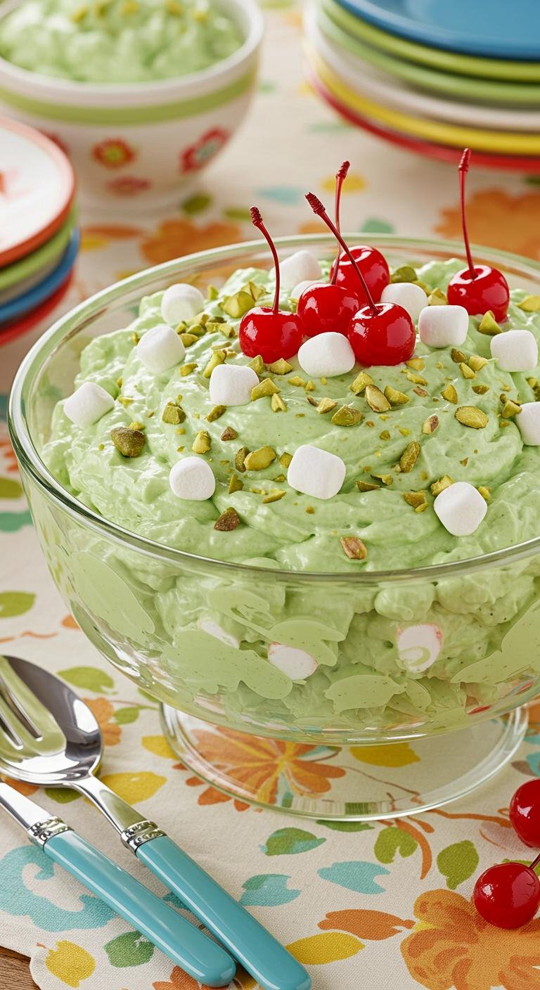 Serve cold and enjoy this retro, creamy pistachio delight!